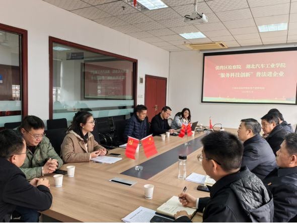 为深入学习贯彻习近平总书记关于科技创新、知识产权保护的重要论述,将党建优势转化为服务科创企业创新、保护知识产权的实际效能,12月2日上午,我校法学与知识产权学院施洋教师党支部联合十堰市张湾区人民检察院、十堰市张湾区知识产权局,在十堰市高端智能装备产业孵化园开展“聚焦企业知识产权需求 激活科技创新发展动能”联合主题党日活动。法学与知识产权学院党委书记计毅波、十堰市张湾区人民检察院党组书记、检察长汪朝晖、十堰市张湾区知识产权局副局长明海等党员代表及园区企业负责人共15人参加活动。