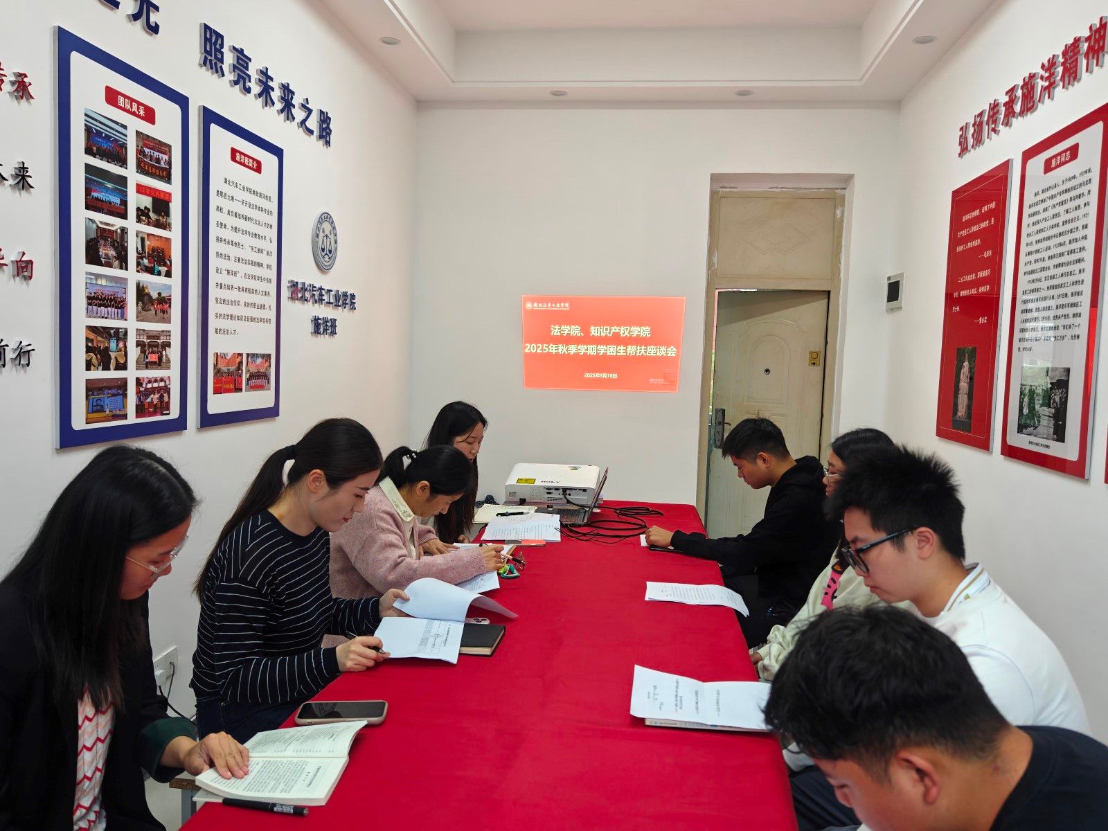 本网讯(文/图 于海莹)9月18日,法学院、知识产权学院在3415会议室召开学业帮扶座谈会,旨在分析学生学业情况,制定帮扶措施,助力学生进步。学院党委副书记李童、副院长成继平、学工办主任郭慧、辅导员于海莹及相关班主任、学生代表参会。